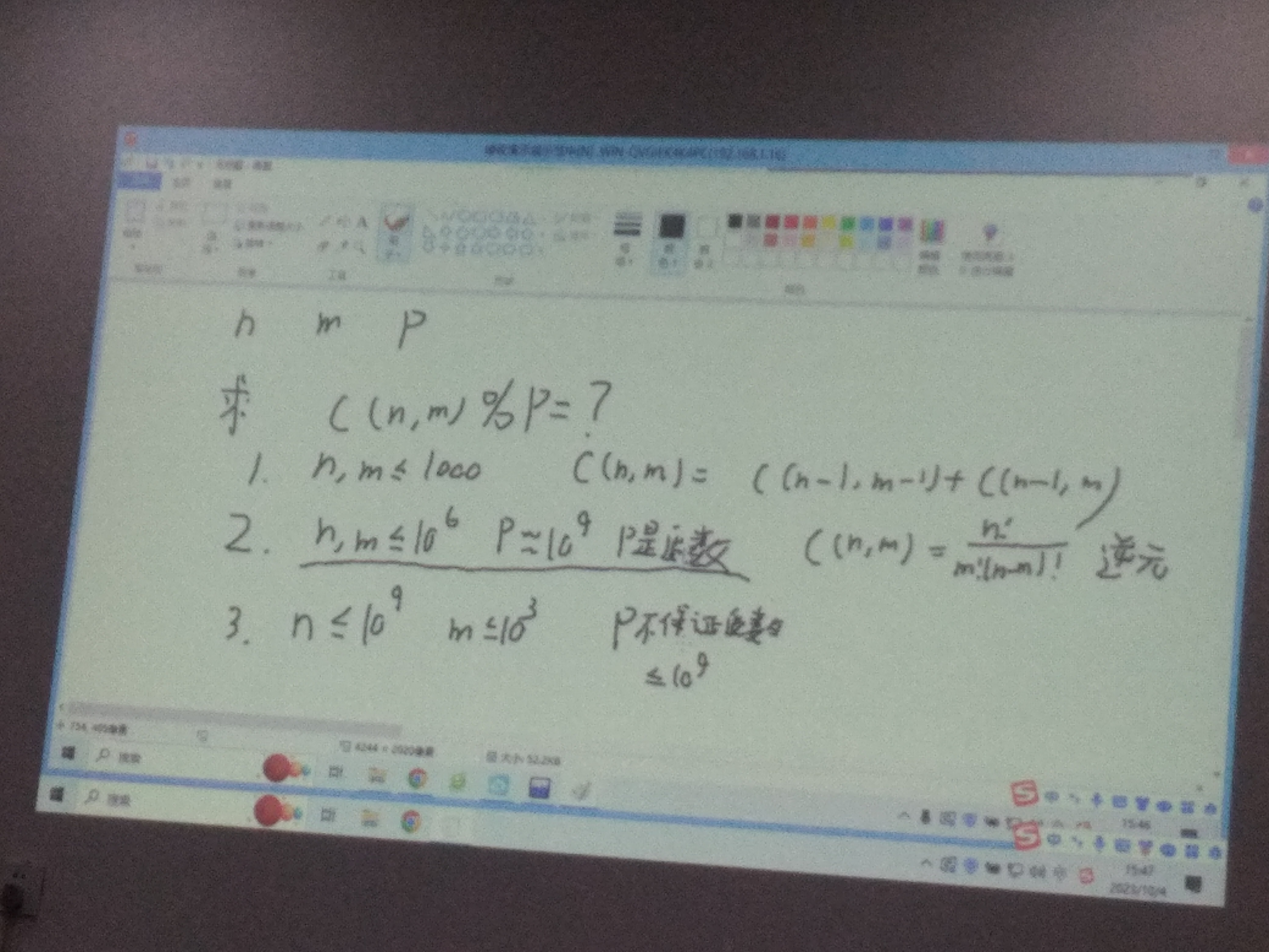 已知$n, m, p$,求$C(n, m)\ \%\ P$